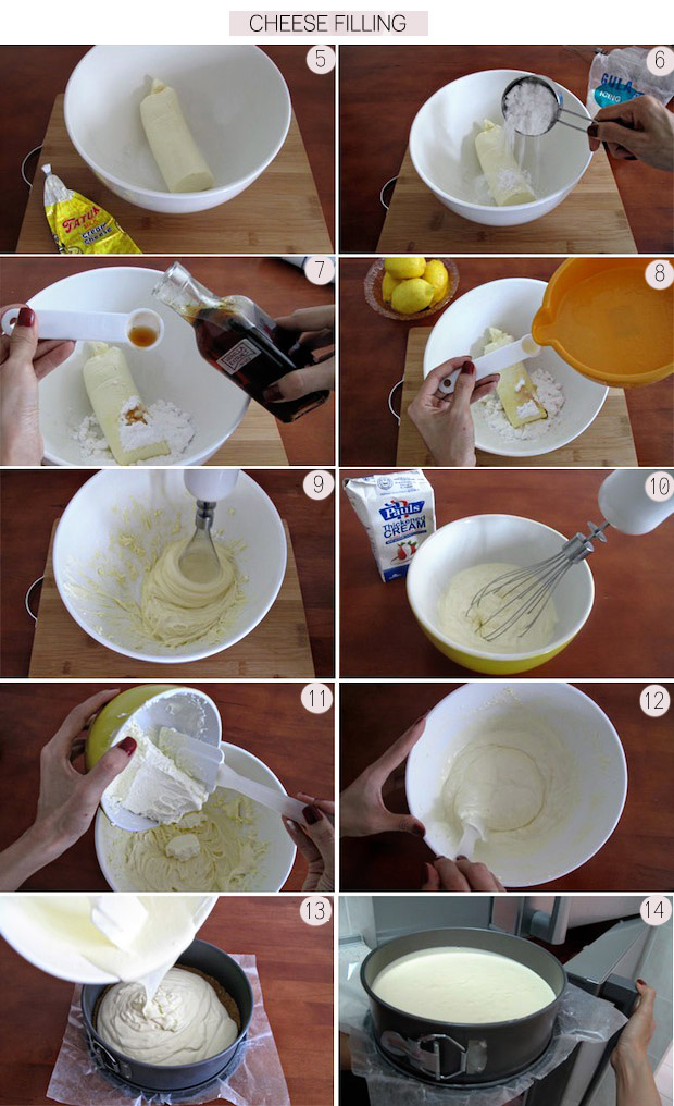 For the Cheese filling, Beat together the cream cheese, icing sugar, vanilla extract and lemon juice in a bowl until smooth.